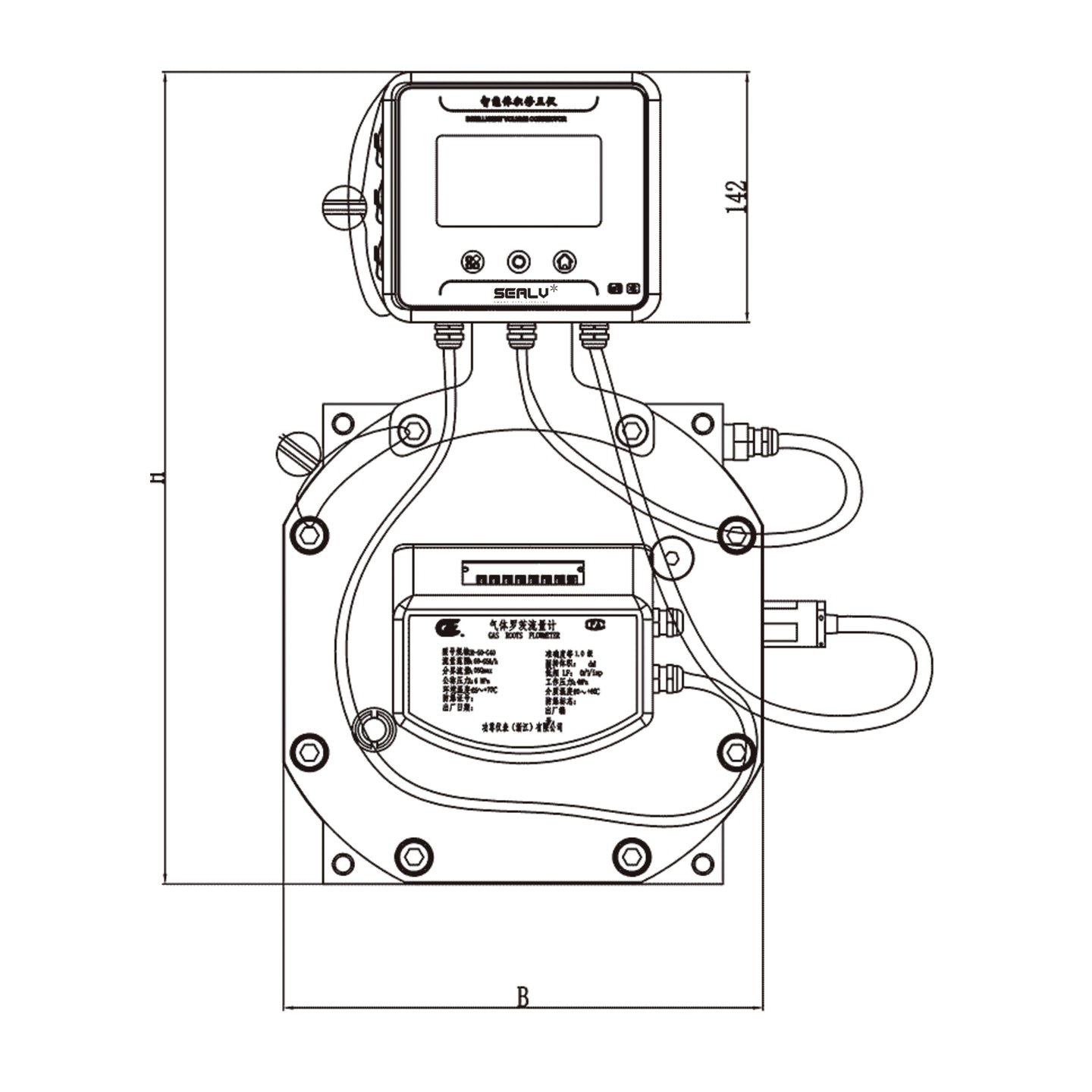 The intelligent Roots (waist-wheel) flowmeter is a positive displacement flow measurement instrument that obtains the gas volume at standard conditions through temperature and pressure compensation. Flow volume correction is integrated with both an IC card controller and an IoT remote transmission module. Utilizing IoT technology, it enables automatic meter reading, remote top-up, remote price adjustment, and valve control. Simultaneously, it provides real-time monitoring and alarm functions for parameters such as flow, pressure, temperature, and the operational status of the flowmeter.